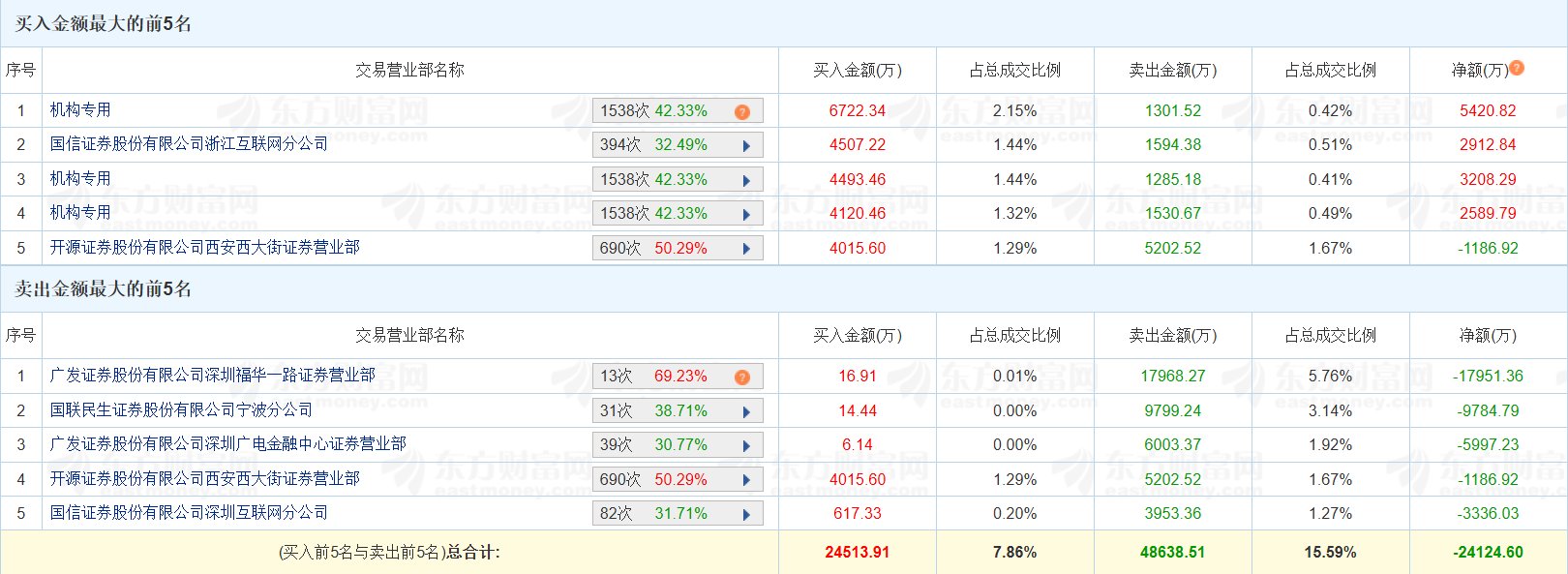 龙洲股份(002682.SZ)今日涨停6连板,换手率55.52%,成交额31.2亿元。龙虎榜数据显示,三家机构买入1.53亿元,卖出4117万元,净买入1.12亿元;游资“欢乐海岸”位列卖一席位,净卖出1.8亿元。上榜席位全天买入2.45亿元,卖出4.86亿元,合计净卖出2.41亿元。(格隆汇)