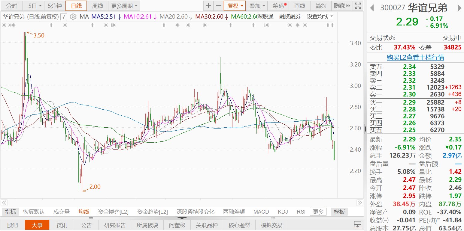 华谊兄弟(300027.SZ)跌6.91%报2.29元,总市值63.54亿元。华谊兄弟公告称,受经济形势影响,公司因部分回款资金未能如约到位,造成暂时性流动资金紧张,出现债务逾期5250万元,超过公司2024年经审计净资产的10%。此外,公司部分银行账户被冻结。公司将积极与法院及涉诉案件相关方沟通协商,争取达成和解。同后续公司持续整合优化现有资源配置和资产结构,逐步退出和处置与主营业务整合度低、与公司产业链协同度薄弱的资产,提高资产配置效率,转让所得资金用于更好地推进公司主营业务发展。由于债务逾期,公司可能将面临支付由此产生的相关违约金等费用,因债务逾期也可能将面临诉讼、仲裁等风险。(格隆汇)