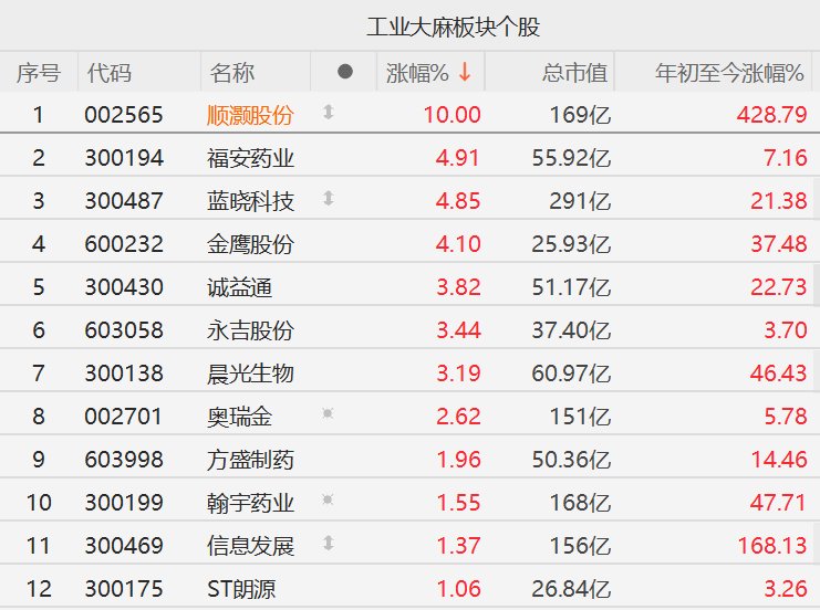 A股市场工业大麻概念股走强,其中,顺灏股份涨停,福安药业、蓝晓科技、金鹰股份涨超4%,诚益通、永吉股份、晨光生物涨超3%。有消息称特朗普预计将指示政府推进将大麻重新归类为危害较低的药物,这一举措可能成为数十年来美国大麻政策最重大的转变之一。知情人士称,特朗普已经与大麻行业高管、卫生与公众服务部部长小罗伯特·F·肯尼迪,以及医疗保险与医疗补助服务中心(CMS)负责人Mehmet Oz讨论了这一想法。一位白宫官员表示,关于重新分类的最终决定尚未作出。重新分类将使购买和销售大麻变得更加容易,大麻企业一直在游说政府推动改革,而重新分类的决定可能会减轻税负和银行服务方面的障碍。
