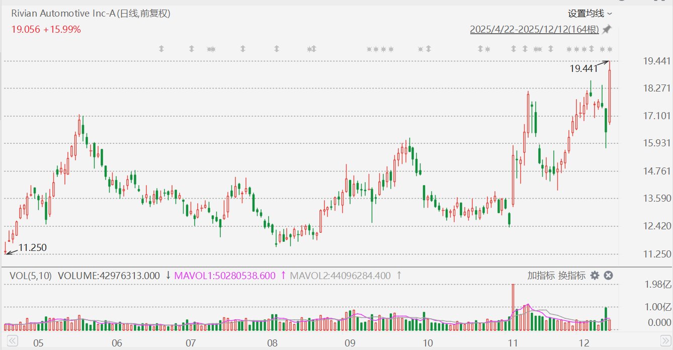 美股异动丨Rivian大涨超18%,发布自主研发的人工智能芯片