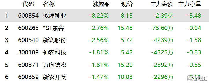种业股走低,敦煌种业跌超8%,新赛股份、神农科技、万向德农等跟跌。