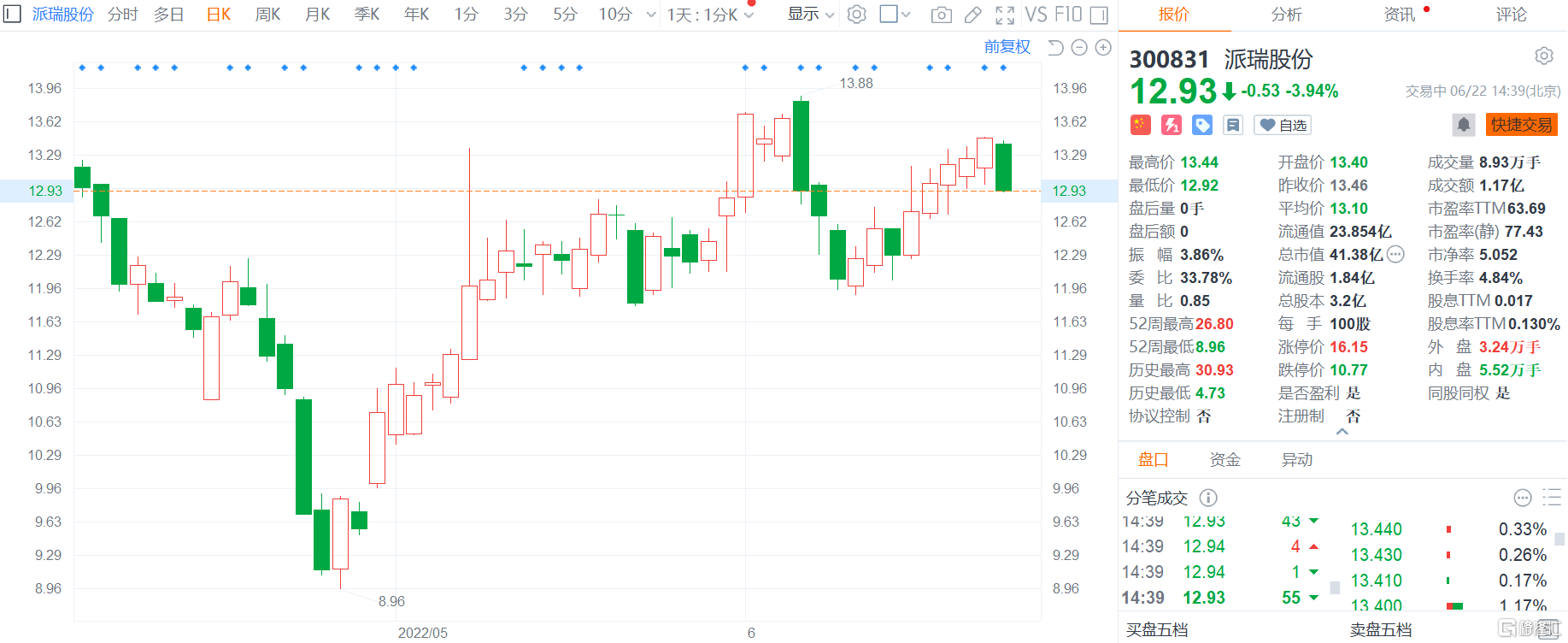 A股异动丨派瑞股份跌约4% 国开装备自1月12日起累计减持1.18%股份 持股降至5%以下