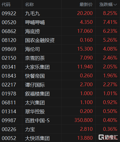 格隆汇6月27日丨港股餐饮股齐涨,九毛九涨8.25%,呷哺呷哺涨7.41%,海底捞涨6.23%,海伦司涨4.08%,奈雪的茶、大家乐等跟涨。上海市防控办研究决定,上海市自6月29日起,辖区内无中风险地区且近一周内无社会面疫情的街镇,有序放开餐饮堂食。恢复餐饮堂食的具体区域,由各区政府综合评估疫情防控形势后确定。