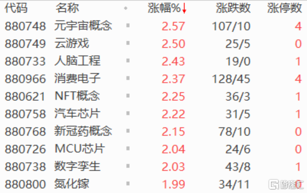 行业板块多数上涨,上海培育元宇宙新赛道,元宇宙概念应声大涨,智度股份等多股涨停,消费电子、汽车芯片、MCU芯片等概念大涨靠前,立讯精密涨约8%;通信大数据行程卡查询时间由14天变为7天,旅游股全线上涨;白酒、新冠药、CXO等消费题材表现活跃,复星医药涨4%。昨日表现强劲的光伏、锂电池等赛道股回落,强势题材钒电池概念大跌,攀钢钒钛跌8%。