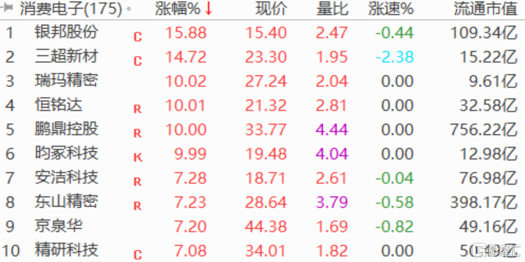 消费电子概念大涨,鹏鼎控股涨停,立讯精密涨5.5%。数据显示,北上资金分别于7月28日、29日连续两日净买入立讯精密,共6.39亿元。中信证券最新研报指出,消费电子(中信)指数自2020年1月至今月度平均动态PE为42x,2022年7月28日动态PE为26x,较2022年6月1日24x有所提升,但仍处于历史较低水平,需求底部复苏背景下建议布局。